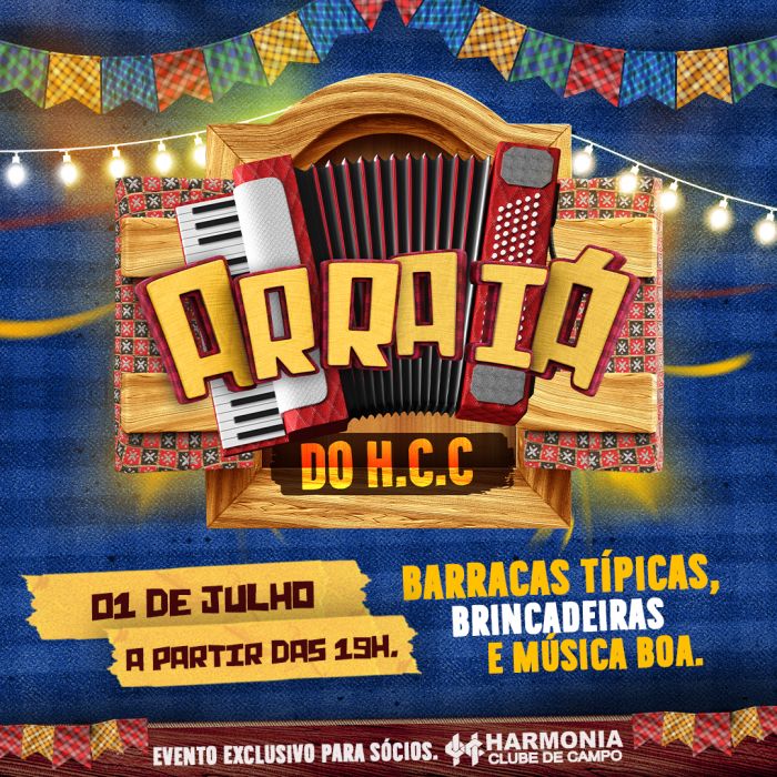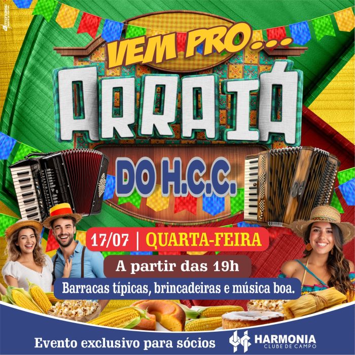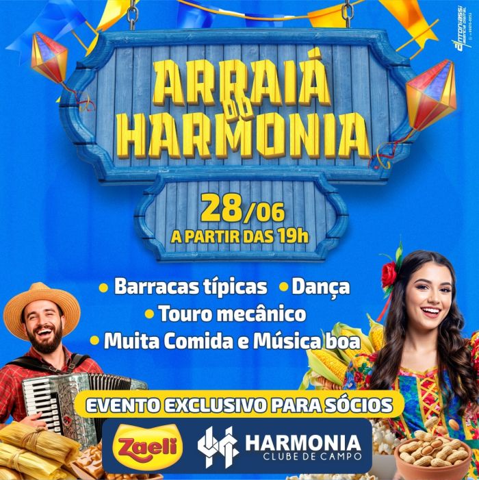 Dia 28 de Junho, Convidamos todos os associados para o tradicional Arraiá do harmonia clube de campo.